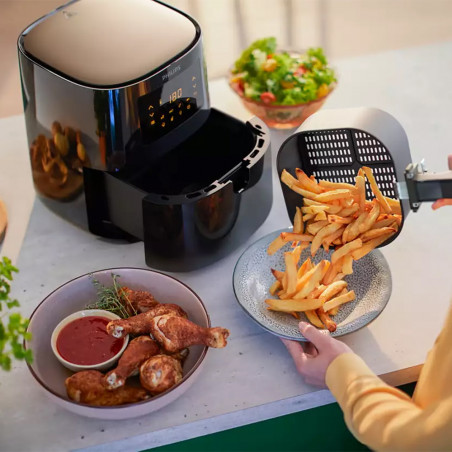 С Philips получавате номер 1 фритюрник за дома. Насладете се на по-здравословна храна, която е хрупкава отвън и мека отвътре, благодарение на технологията за горещ въздух Rapid air. Изтеглете приложението NutriU и открийте много вкусни рецепти за всеки ден.