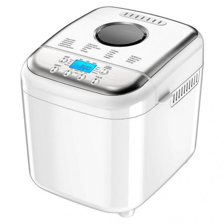 Насладете се на домашно приготвен хляб с перфектен вкус и аромат с помощта на този елегантен и функционален уред. Със своите 19 дигитални програми можете лесно да приготвяте разнообразни видове хляб, сладко или йогурт. Големият LCD дисплей и 15-часовият таймер за отложено включване осигуряват удобство и контрол върху процеса. Уредът разполага с функция за запазване на топлината до 60 минути и памет от 10 минути при прекъсване на електричеството. Стилният дизайн със стоманени елементи и алуминиевите компоненти правят почистването лесно, а включените аксесоари добавят допълнителна практичност. С мощност от 600 W и възможност за приготвяне на три размера хляб (500 г / 750 г / 1000 г), този уред е идеалният помощник във всяка кухня.