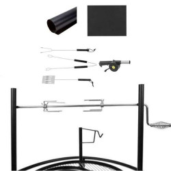 5 в 1 градинско барбекю с чеверме, Неръждаема стомана, Аксесоари, Черен