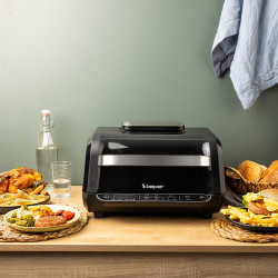 Air Fryer и скара 8в1 Beper P101FRI080 е мултифункционален кухненски уред, който използва технология горещ въздух, за да приготвя храната по-здравословно, без да се използва много или никаква мазнина. Уредът има мощност 1700W и вместимост от 3.8 литра, което е достатъчно за приготвяне на храна за цялото семейство.