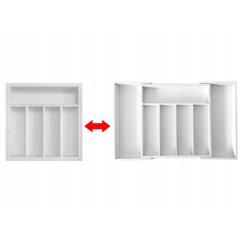 Бамбуков органайзер за прибори Kinghoff KH 1746, Разширяем, Бял 7264_345333 - 100% естествен бамбук с издръжлива качествена конструкция - 7 дълги отделения - перфектен за готварски прибори, инструменти и прибори за хранене - Разширява се от двете страни, за да осигури допълнително място за съхранение - Издръжлив и лесен за почистване - Подходящ е за повечето стандартни чекмеджета - Размер в затворен вид: 31 х 31.5 х 5 см - Разширяем размер: 52 x 31.5 x 5 см