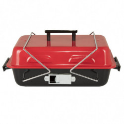Барбекю на дървени въглища Muhler 1003818, 40.5x26 см, С капак, Поцинкована скара, Червен/черен