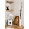Дизайнът на блендера е елегантен и модерен, изпълнен в бял цвят, което го прави подходящ за всяка кухня, добавяйки стил и съвременност към интериора.