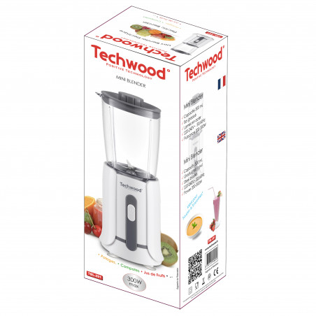 Блендер мини Techwood TBL-201, 300W, 0.5 л, Стоманени ножове, Бял