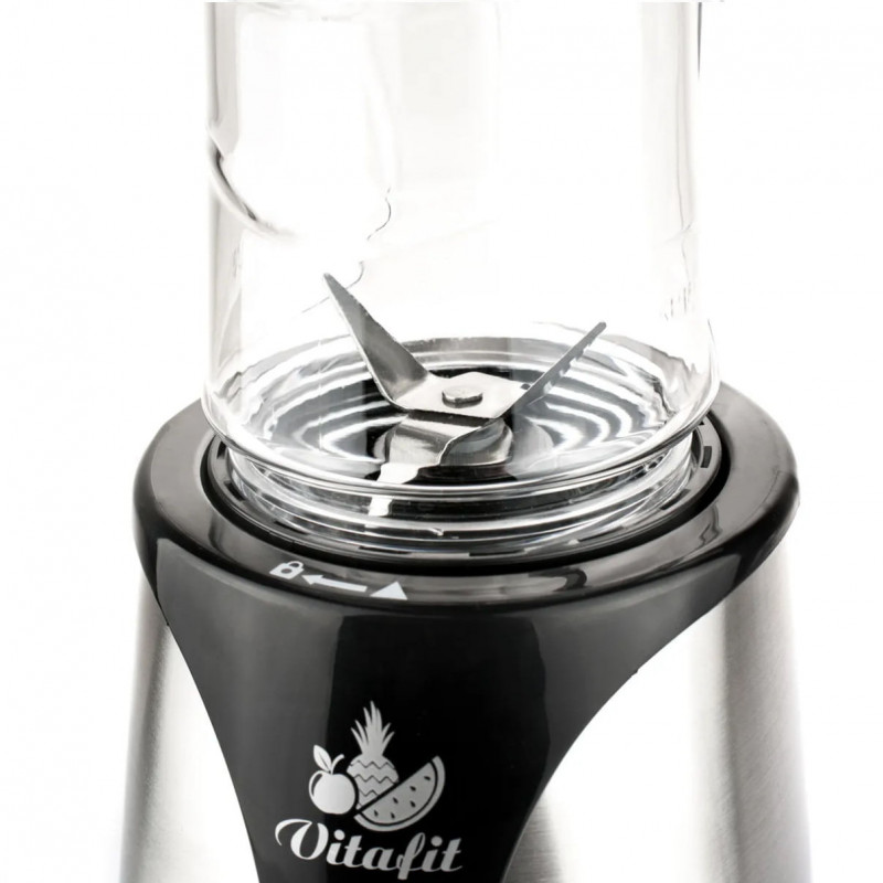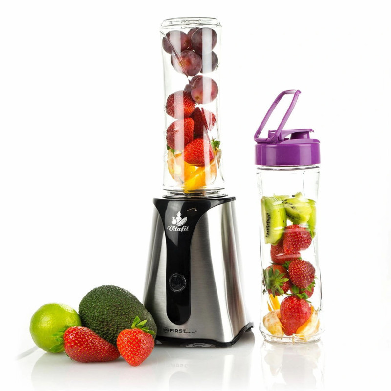 Блендер за смути First Austria FA-5243-1, 350W, 2 х 600 мл, BPA free, Трошене на лед, 4 стоманени ножа, Инокс/черен