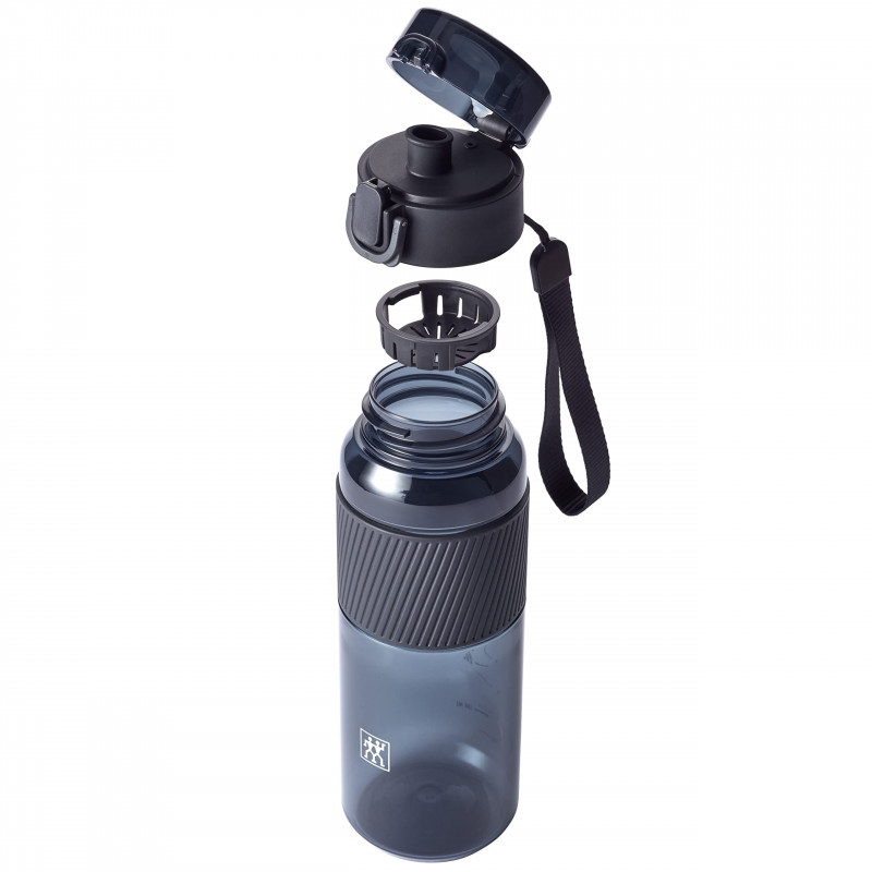 Насладете се на любимата си напитка навсякъде с бутилката ZWILLING! Изработена от устойчив на удари Tritan, тя е идеалният спътник за спорт, училище или офиса. Благодарение на защитното заключване, бутилката е напълно непропусклива, а удобната силиконова ръкохватка осигурява сигурен захват. Големият отвор улеснява пълненето, а подвижният филтър задържа семките и нежеланите остатъци от плодовете.