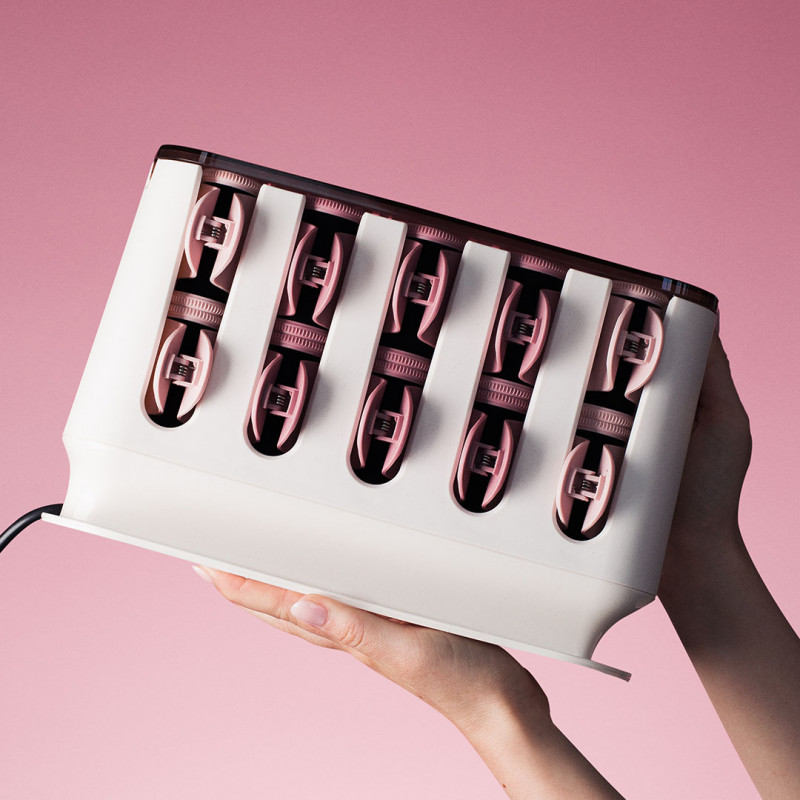 Комплектът съдържа 20 ролки в два различни размера - M (25 мм) и L (32 мм), с които ще можете да направите както големи букли, така и по-стегнати къдрици. Просто включете кутията в мрежата и ролките ще са готови за ползване след 90 секунди!