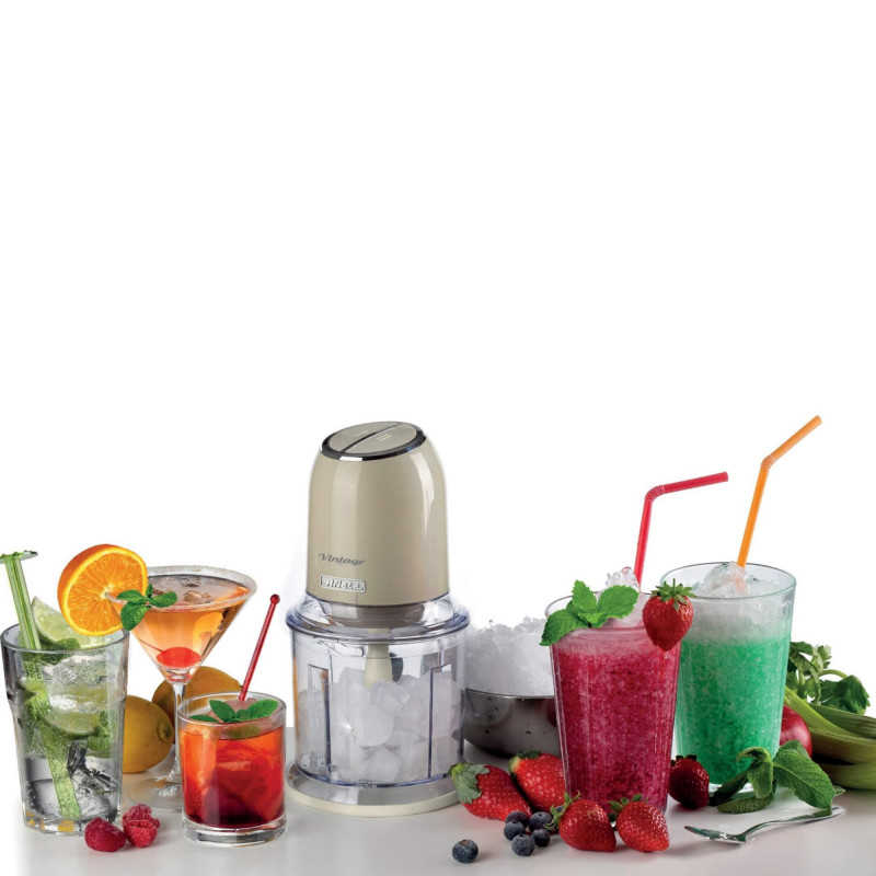 С помощта на чопъра Vintage можете да се наслаждавате на бързо нарязване на зеленчуци, месо, сирене и други съставки. Това е идеалният уред за всеки, който не обича да прекарва твърде много време в кухнята. Освен това, с възможността за трошене на лед, този чопър е и страхотен аксесоар за забавни вечери с приятели, приготвяйки студени напитки и коктейли. Много повече от обикновен чопър, той предлага възможност за приготвяне на домашно песто, кайма или сладкарски съставки като натрошени бисквити и шоколад, за да създадете не само вкусни, но и креативни ястия и десерти.
