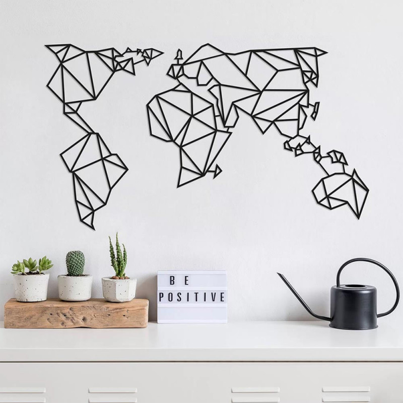 Декорация за стена Tanelorn 891TNL1174, Световна карта, 100x58 см, Метал, Черен