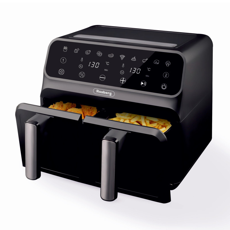 Двоен фритюрник с горещ въздух Rosberg Premium RP51980N, 1700W, 8 литра, Таймер, 200C, Черен