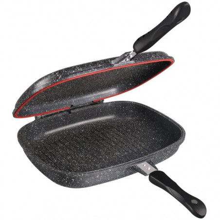 Двоен грил тиган Bohmann BH 2700-32MRB, 32см, Мраморно покритие, Черен