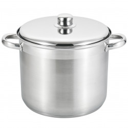 Тази дълбока тенджера от висококачествена неръждаема стомана е създадена за ефективно и дълготрайно готвене. Със специално многослойно дъно за оптимална топлопроводимост, тя бързо достига желаната температура и спестява енергия. Вградените здрави дръжки и металният капак осигуряват удобство и безопасност при употреба. Формата без ръбове предотвратява залепването на храна и улеснява почистването, а тя е съвместима с различни видове нагреватели, включително индукционни. Подходяща за съдомиялни машини и идеална за приготвяне на ястия с минимално количество вода и мазнини, като запазва вкусът и полезните вещества в храната.