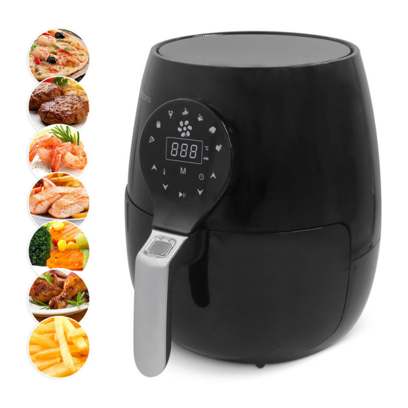 Представяме ти фритюрник с горещ въздух - по-здравословна алтернатива на пържената храна. Уред, който ти осигурява хрупкави, солени, пържени картофи за броени минути с 95% по-малко мазнини и с наполовина по-малко калории, в сравнение с тези, които могат да се очакват в един традиционен ресторант. И всичко това, без компромиси с вкуса. Всъщност, дори можеш да добавиш любимите си подправки и да използваш нестандартни съставки, за да разчупиш любимите пържени ястия.
