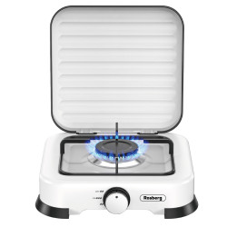 Единичен газов котлон с капак Rosberg R51454D1, 2.2 kWh, 30 mbar, Въглеродна стомана, Бял