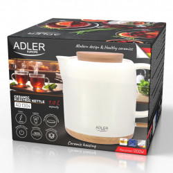Електрическа кана Adler AD 1304, 1200W, 1l, Керамична, Въртяща се основа, Защита от работа без вода, Екрю