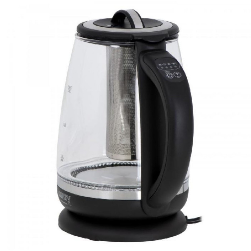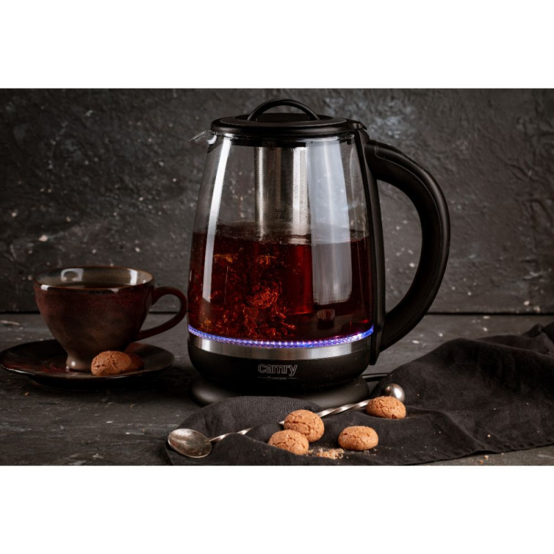 Електрическа кана с цедка за чай Camry CR 1290, 2 л, Избор на градуси, Светеща, Черен