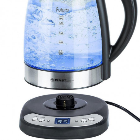 Електрическа кана First FA-5406-4, 2200W, 1.7 л, Избор на градуси, Стъклена, Инокс/черен