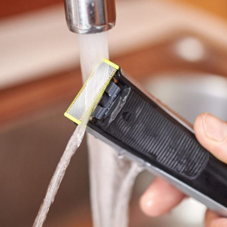 Използвайте на мивката или го вземете със себе си под душа. Philips OneBlade за мокра и суха употреба се почиства лесно и може да се използва със или без пяна.