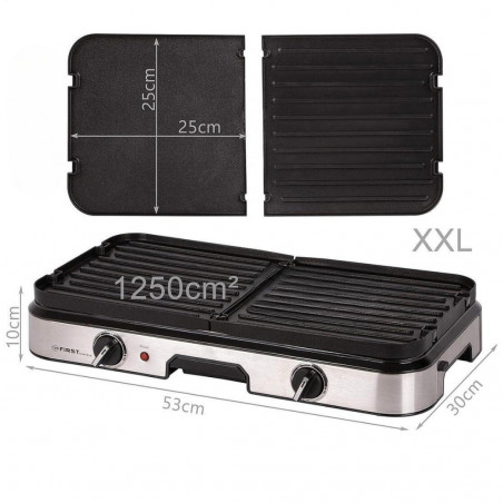 Електрическа скара First Austria FA-5346, 2000W, 2 Независими зони, Термостат, Незалепващо покритие, Тавичка за мазнини, Черен/инокс