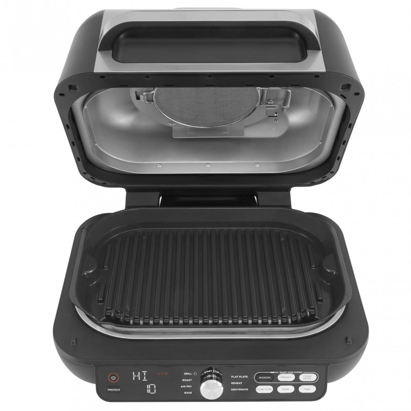 Ninja представя вътрешна скара от ново поколение предоставя уникални възможности за готвене. С две сменяеми грил повърхности, уредът осигурява работа с отворен или затворен капак и предлага 7 персонализирани функции за готвене.