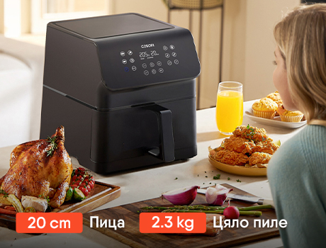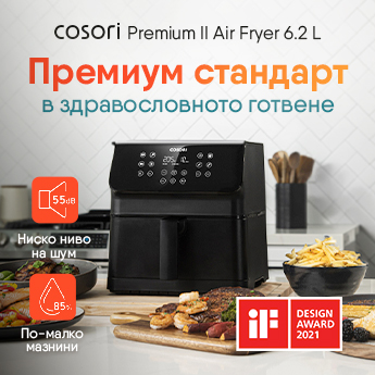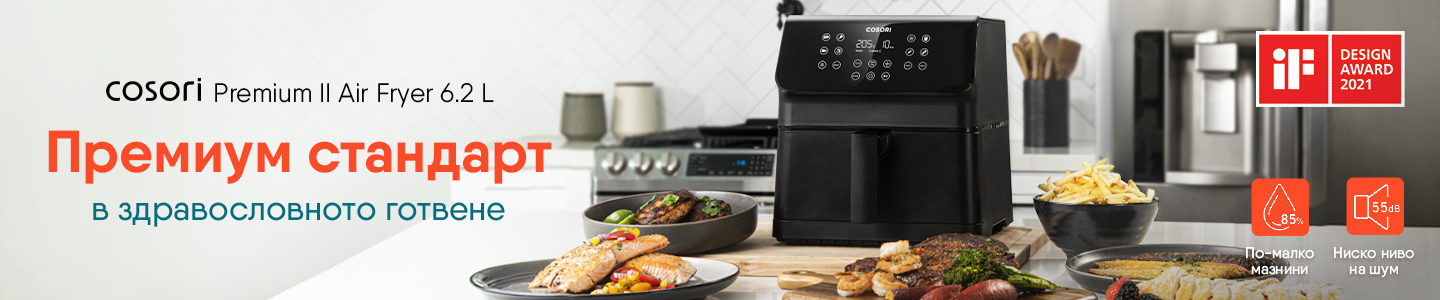 Приготвяйте вкусни и здравословни ястия за цялото семейство с Cosori Premium II. Новият и усъвършенстван модел съчетава по-голям капацитет от 6.2 литра с елегантен и компактен дизайн. С 11 интуитивни функции за готвене и до 85% по-малко мазнини, вие получавате перфектна хрупкавост без компромис със здравето.