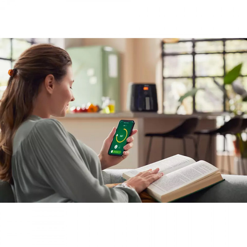 Откривайте нови рецепти с приложението NutriU и получавайте персонализирани препоръки. Управлявайте уреда лесно чрез сензорен екран със седем програми. Можете да избирате между различни готварски методи като пържене, печене и барбекю. Всички компоненти са подходящи за съдомиялна и лесни за почистване. Без неприятни миризми на пържено у дома.