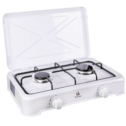 Газов котлон с две нагревателни зони Burgas BRG102W, 3400 W, Подвижен капак, Бял