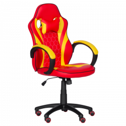 Геймърски стол с футболни мотиви Carmen 6305, До 100 кг, Еко кожа, Регулиране на люлеенето, Силиконови колелца, Червен/жълт