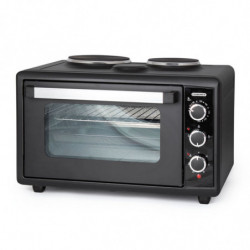 Малка готварска печка Termomax TC46BK Black е практичен избор за Вас, Вашето семейство или Вашите нужди. Два електрически котлона и фурна с обем от 46 литра, които позволяват удобно приготвяне на храна, благодарение на нужното място, с което се предлага. Двойното стъкло на вратата на фурната, емайлираните вътрешни страници и индикаторната лампа правят малката готварска печка предпочитат продукт от тази категория. Благодаря на техните размери и цвят черен, той е подходящ за всеки интериор, кухня, тераса или друго помещение, където се нуждаете от нея. Закупувайки малка готварска Termomax TC46BK Black , Вие получавате една квадратна тава, както и решетка.