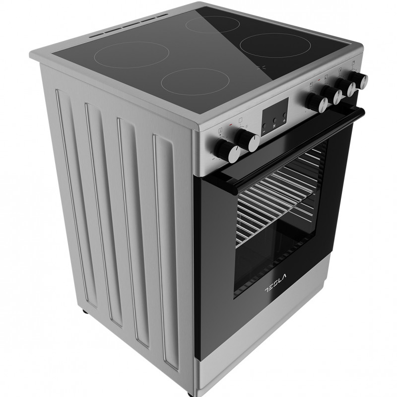 Готварска печка Tesla CV6400SX, 8.1 kW, 56 литра, Клас А, 4 витрокерамични котлона, Грил, 40-240 градуса, Сребрист