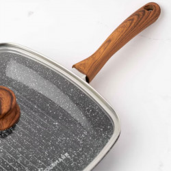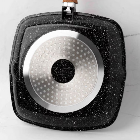 Грил тиган с капак Goldmann GM-0924L, 24x4.5 см, Мраморно покритие, Индукция, Черен/кафяв