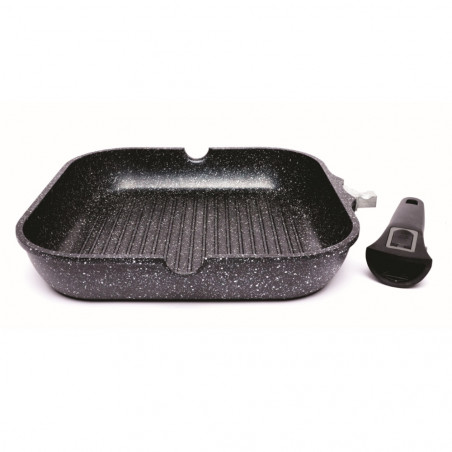 Грил тиган с махаща се дръжка Techwood TP-28G, 28 см, Мраморно покритие Greblon, Черен