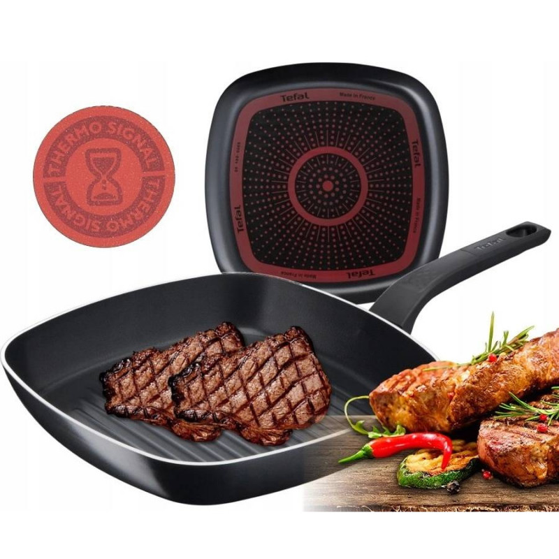 Грил Тиган Tefal B5674053, 26 см, Титаниево покритие, Diffusion дъно, Thermo-Signal, Thermo-Spot, Черен