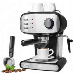 Кафемашина HOMA HCM-7515, 850 W, 15 бара, 1.5 литра,Крема диск, Разпенване, Двоен филтър, Черен/Инокс