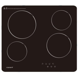 Керамичен плот за вграждане Crown PVT604.C, 6.5 kWh, Защита от деца, Индикатор за оставаща топлина, Черен