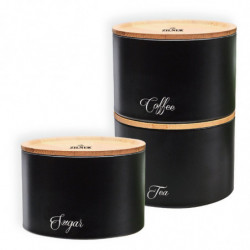 Комплект бурканчета за кафе, чай и захар Zilner ZL-1121, 3 броя, Матово покритие, Бамбук и стомана, Черен