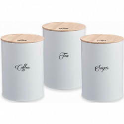 Комплект бурканчета за кафе, чай и захар Zilner ZL-1125, 3 бр, Бамбук и стомана, Бял