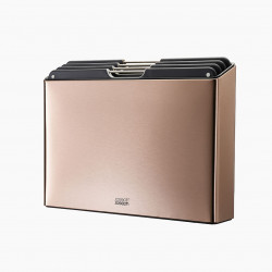 Нашият комплект от дъски за рязане Folio™ е идеален, за да държите всички дъски подредени и с лесен достъп. Всяка дъска за рязане е с безопасна за ножа текстурирана повърхност и цветно обозначени детайли, които помагат за по-хигиенично и ефективно приготвяне на храната. Дъските са елегантно подредени в кутия от неръждаема стомана.