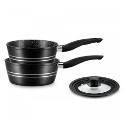 Комплект касероли с универсален капак Royalty Line RL-FS2MB, 3 ч, Мраморно покритие, Индукция, Черен