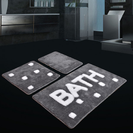 Комплект килими за баня Chilai Home 359CHL4351, 3 части, 100% антибактериална акрилна тъкан, Сив
