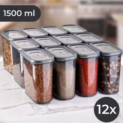 Комплект кутии за съхранение Hermia 964FRM1120, Пластмаса, 1.5л, 12 броя, Прозрачен