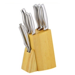 Комплект ножове HausRoland A-601C, 8 части, Точило и ножица, Дървена поставка, Инокс