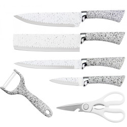 Комплект ножове HausRoland H-009, 6 части, Мраморно покритие, Кутия, Бял