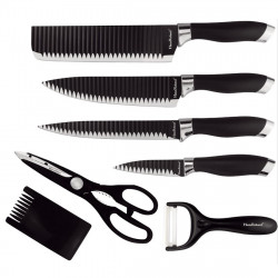 Комплект ножове HausRoland HR007-1, 7 части, Предпазител и ножица, Незалепващо покритие, Черен