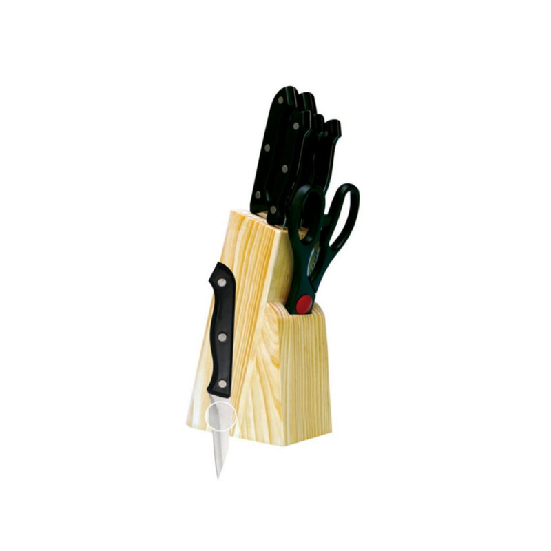 Комплект ножове Rosberg R51630A, 7 части, Дървена стойка, Черен
