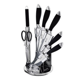 Комплект ножове с точило и ножица Edenberg EB-800, 8 части, Мека дръжка, Черен/инокс