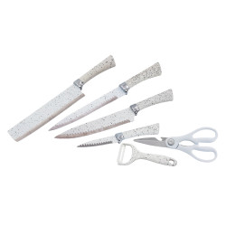 Комплект ножове в магнитна кутия Voltz V51633D6G, 6 части, Белачка, Ножица, Мраморно покритие, Сив/Бял