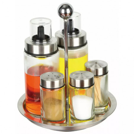 Комплект оливерник и солници Kinghoff KH 1648, 6 части, Въртяща се стойка, Стъкло/инокс