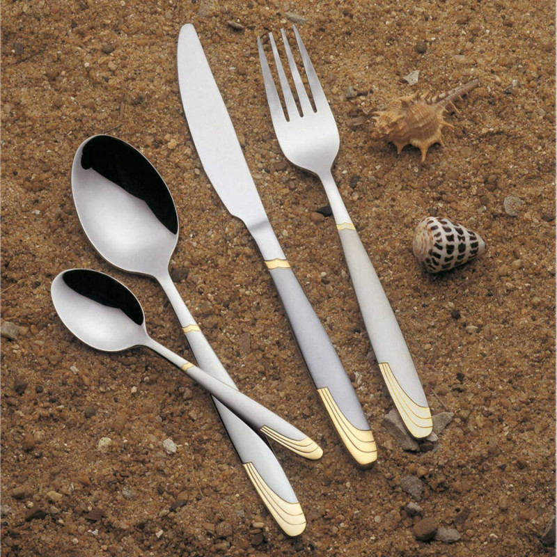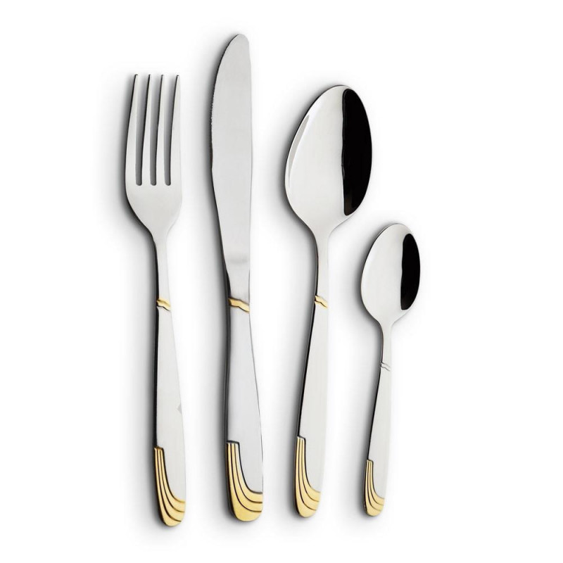 Комплект прибори за хранене Voltz V51512CG24, 24 части, Инокс/златист