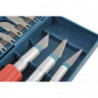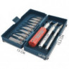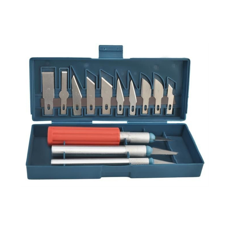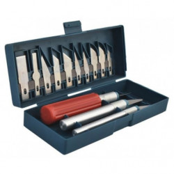 Прецизността в творческите занимания е изключително важно качество. Ето защо всички професионалисти и хоби-творци се нуждаят от правилните инструменти! Изберете този комплект професионални макетни ножчета (тип скалпел), за да направите креативната си дейност още по-успешна. Този комплект от професионални макетни ножчета е специално проектиран за проекти, изискващи прецизно и точно рязане. Той разполага с 13 на брой различни остриета, подходящи за всякакви цели. Подходящ както за професионалисти, така и за хоби-творци! 13 сменяеми ножчета с различно предназначение - С този практичен комплект на ваше разположение ще бъде един пълен спектър от занаятчийски ножчета. Така вие ще бъдете абсолютно подготвени за всякакви проекти и занимания! Включете в работата си различни по вид техники на прецизно рязане и се доверете на висококачествените остриета! Качествена изработка за максимална прецизност - Остриетата са издръжливи и устойчиви на ръжда. Можете да ги използвате за продължителен период от време за проекти от всякакво ниво на трудност! Универсално приложение - Ножчетата тип скалпел могат да бъдат използвани както от начинаещи, така и от професионалисти в сферата на дизайна, изкуството, архитектурата и моделирането. Остриетата са подходящи за голямо разнообразие от материали: обикновена и крафт хартия, плат и различни видове текстил, кожа, глина, картон, пластмаса и др. Удобен калъф от твърда пластмаса за сигурност и безопасност - Остриетата са разположени в практична кутия с магнитен панел. Всеки инструмент има свое обозначено място, което спомага за по-доброто съхранение на комплекта. Калъфът ще ви позволи да транспортирате занаятчийски макетните ножчета по лесен и безопасен начин.